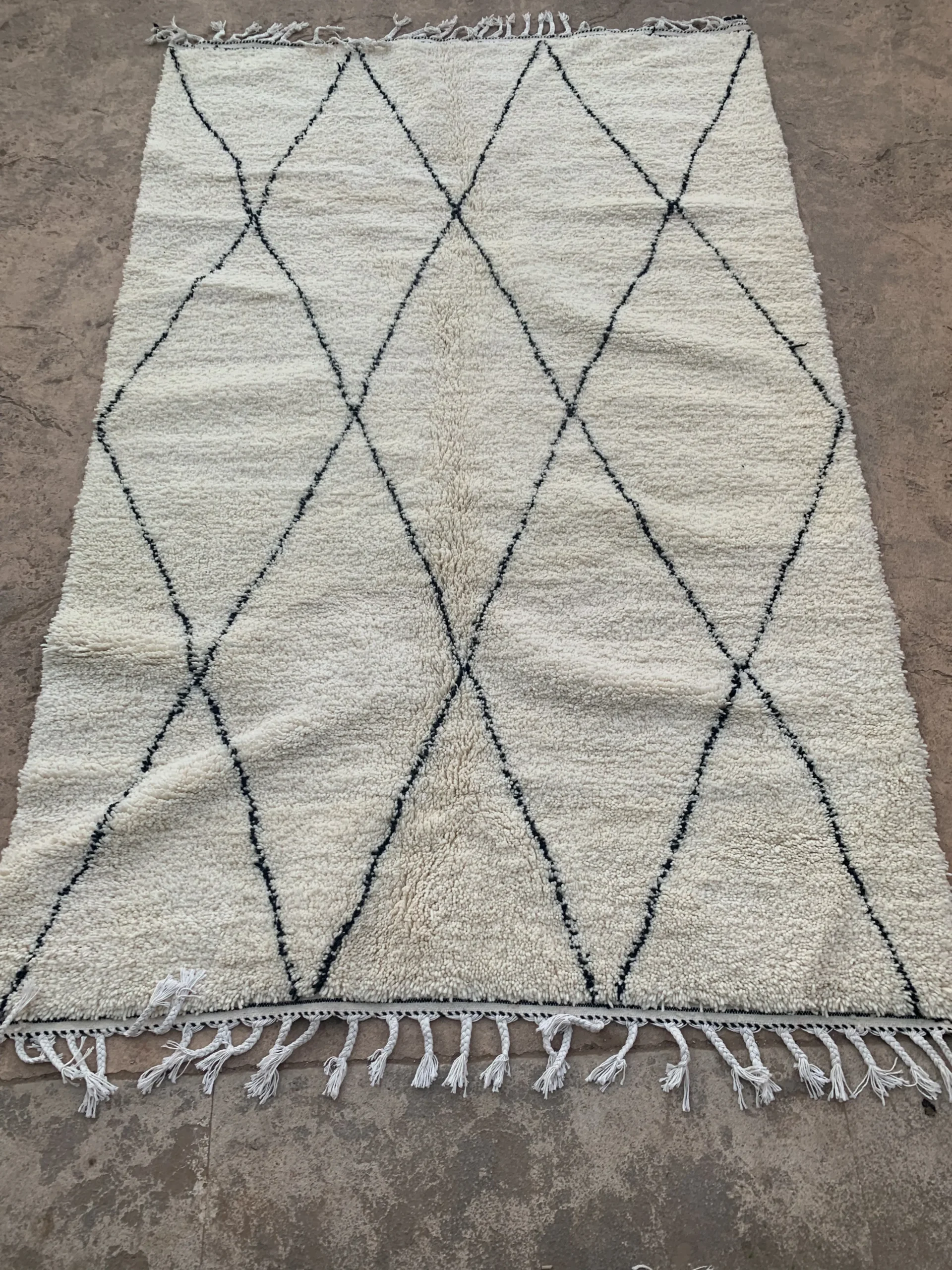 Handwoven Moroccan Beni Ourain Style Ivory Wool Rug with Black Diamond Pattern
