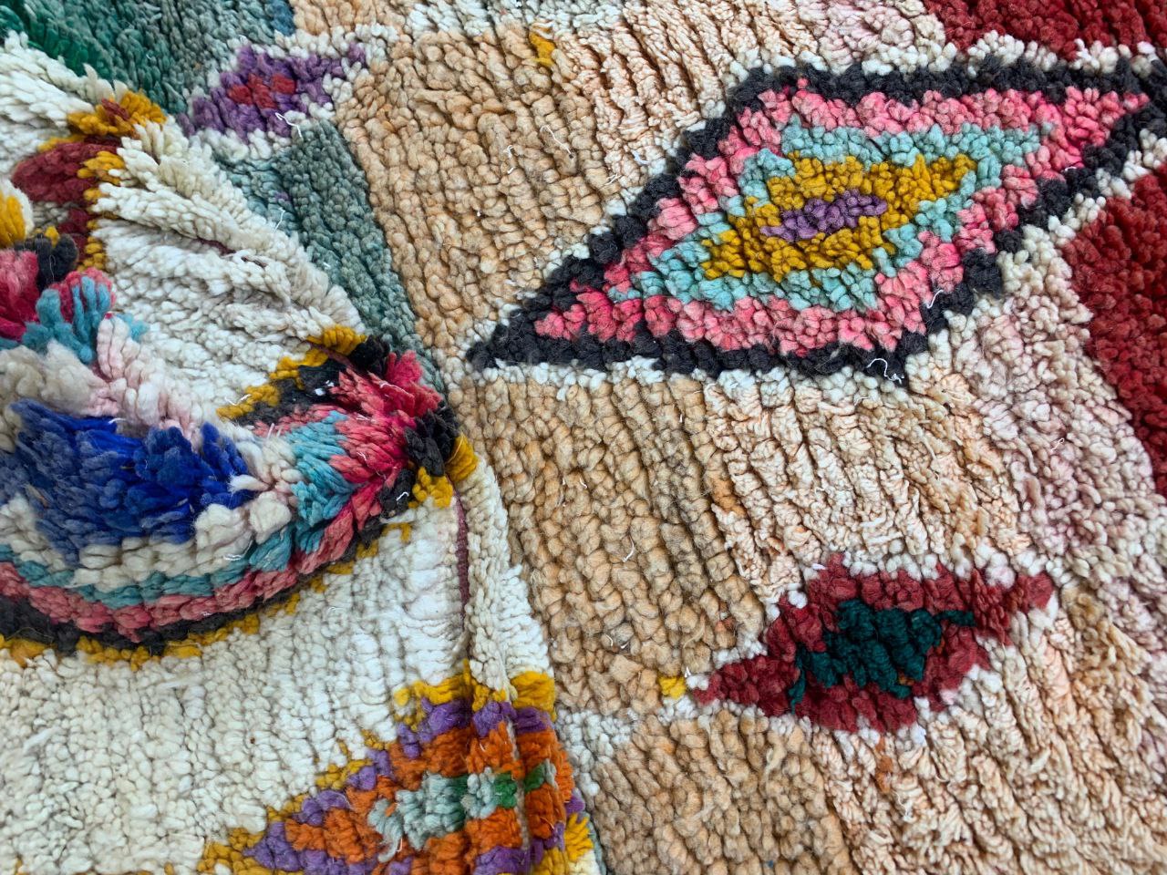 Handwoven Multicolor Shaggy Wool Rug with Pink Border
