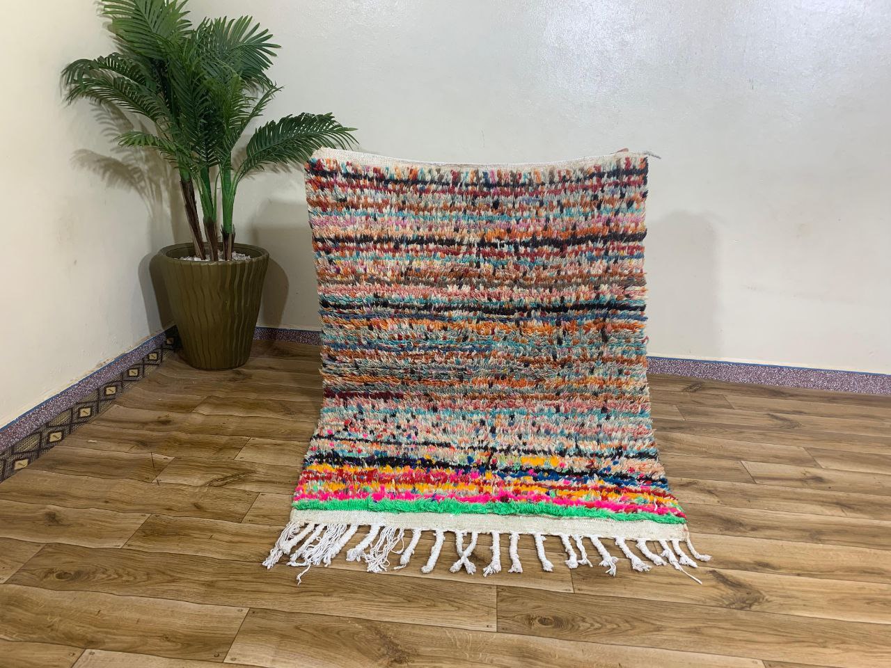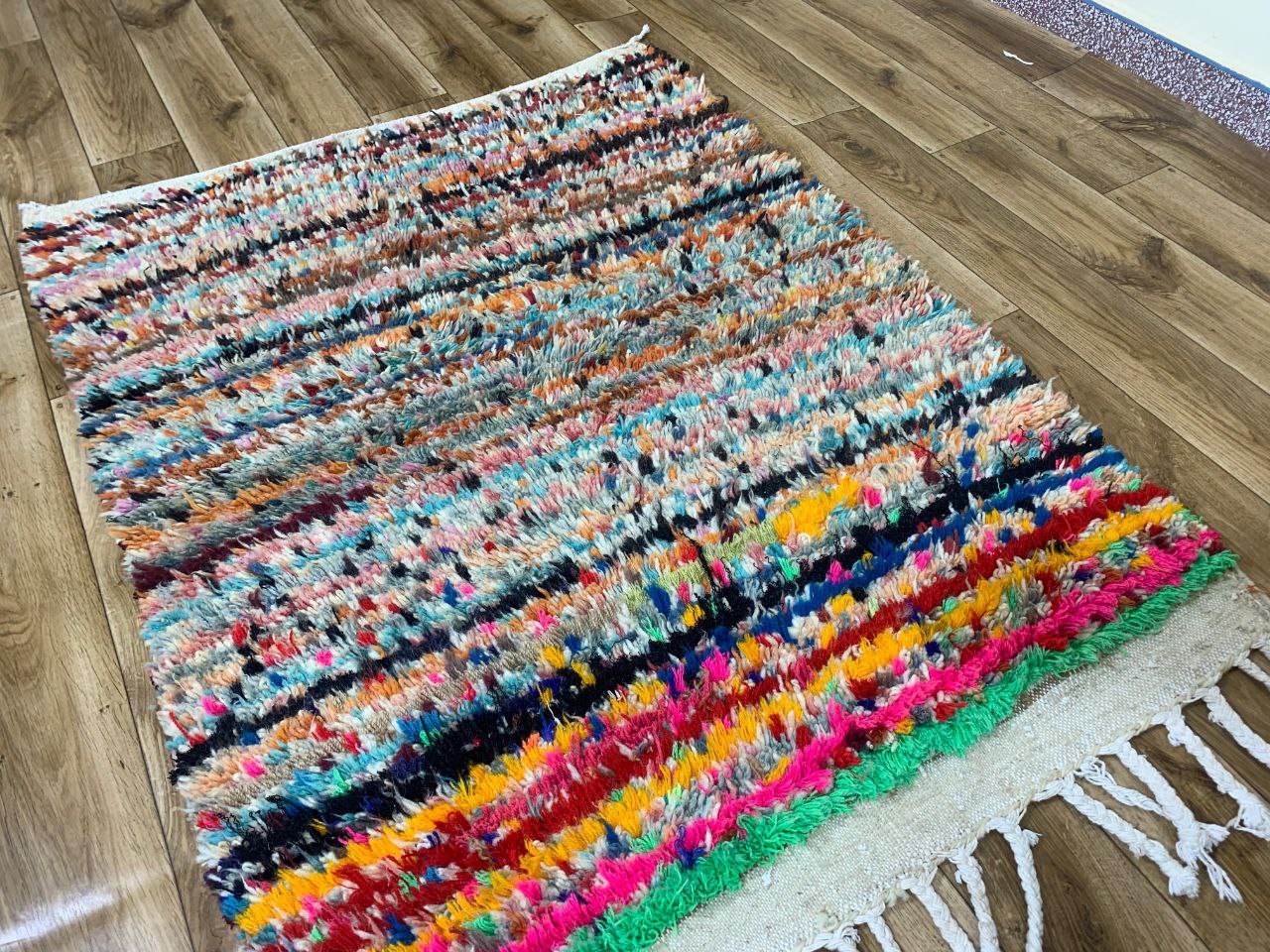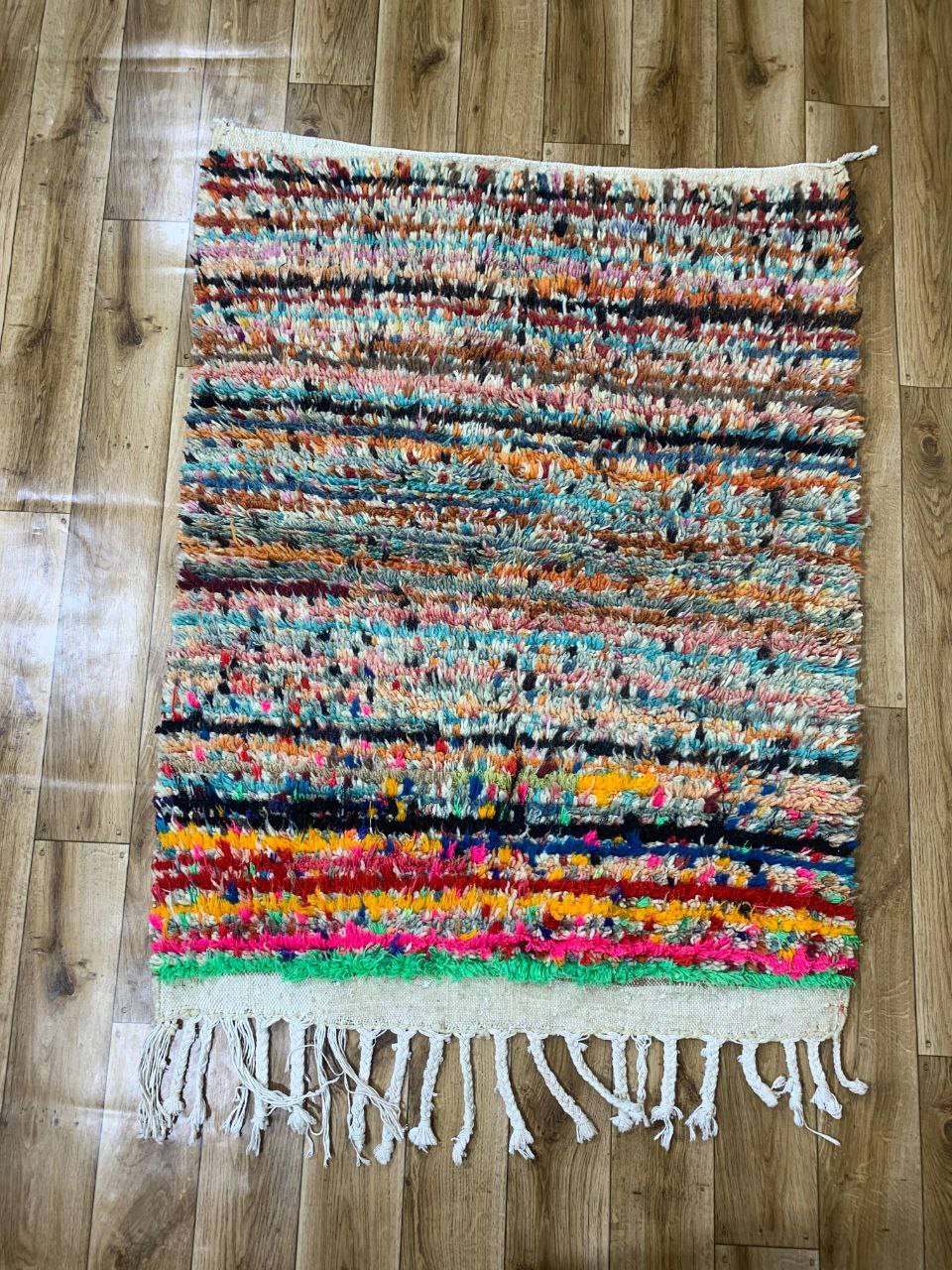 This rug works beautifully in bohemian, eclectic, or casual interiors, bringing personality and handcrafted charm to any room.
