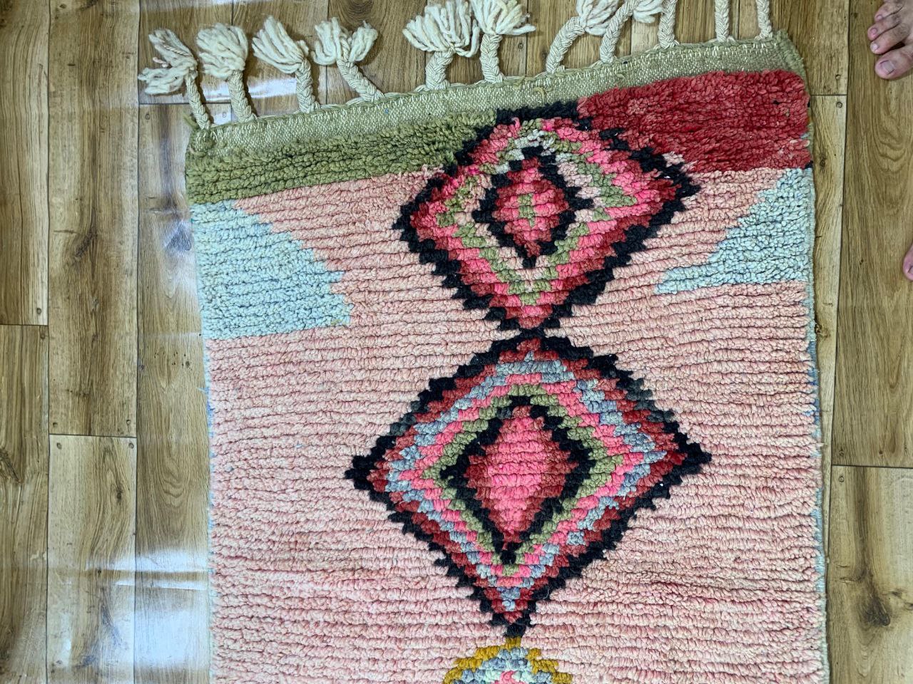 Colorful Handwoven Moroccan Wool Rug with Abstract Geometric Design
