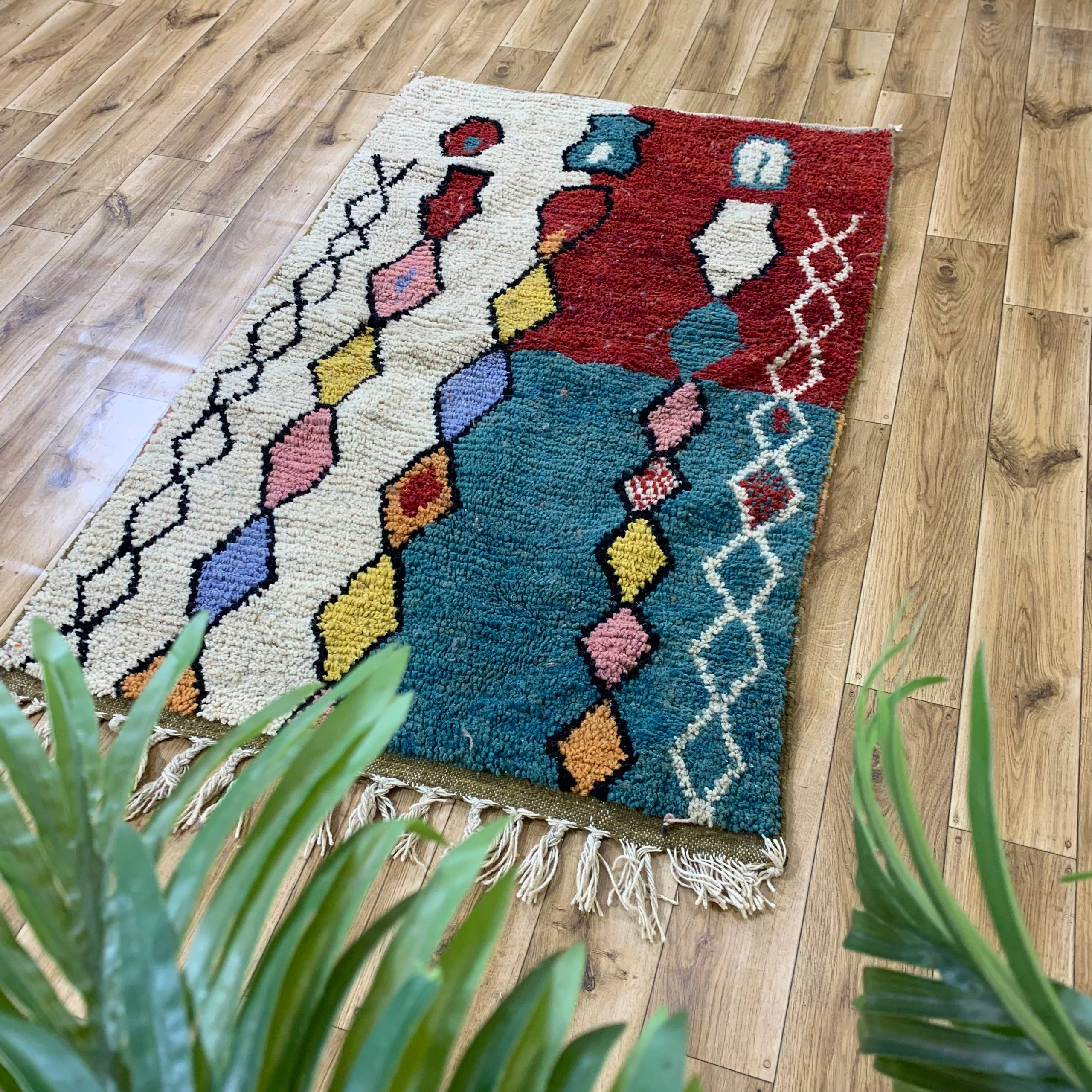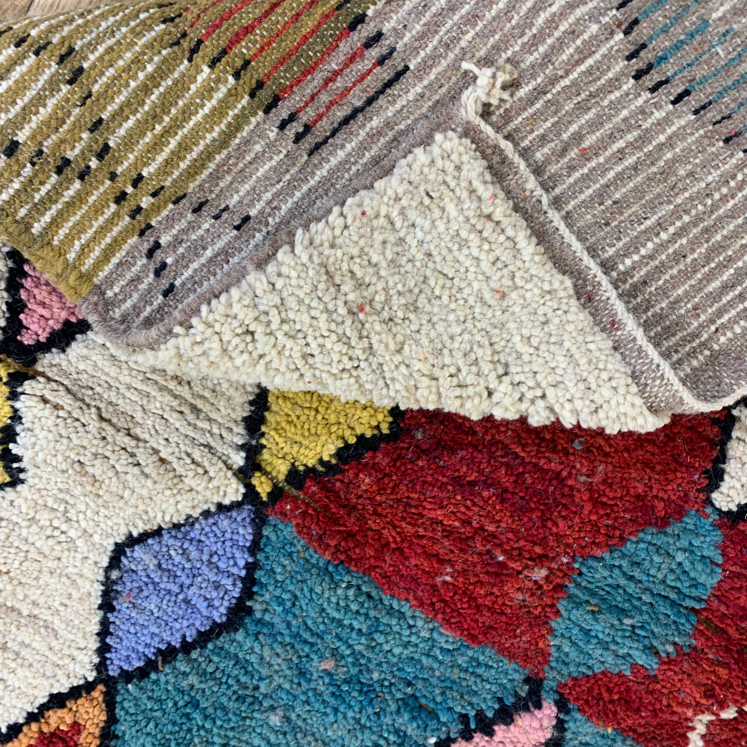 This rug is ideal for adding warmth, color, and visual interest to living rooms, bedrooms, or reading corners where a statement textile is desired.