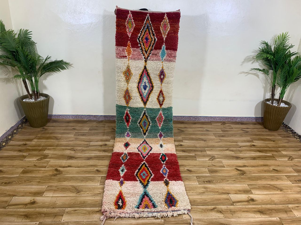 Colorful handwoven rug with raised textured stripes, a pink woven border, and decorative tassel detail. Perfect for adding warmth and artistic charm to any room.