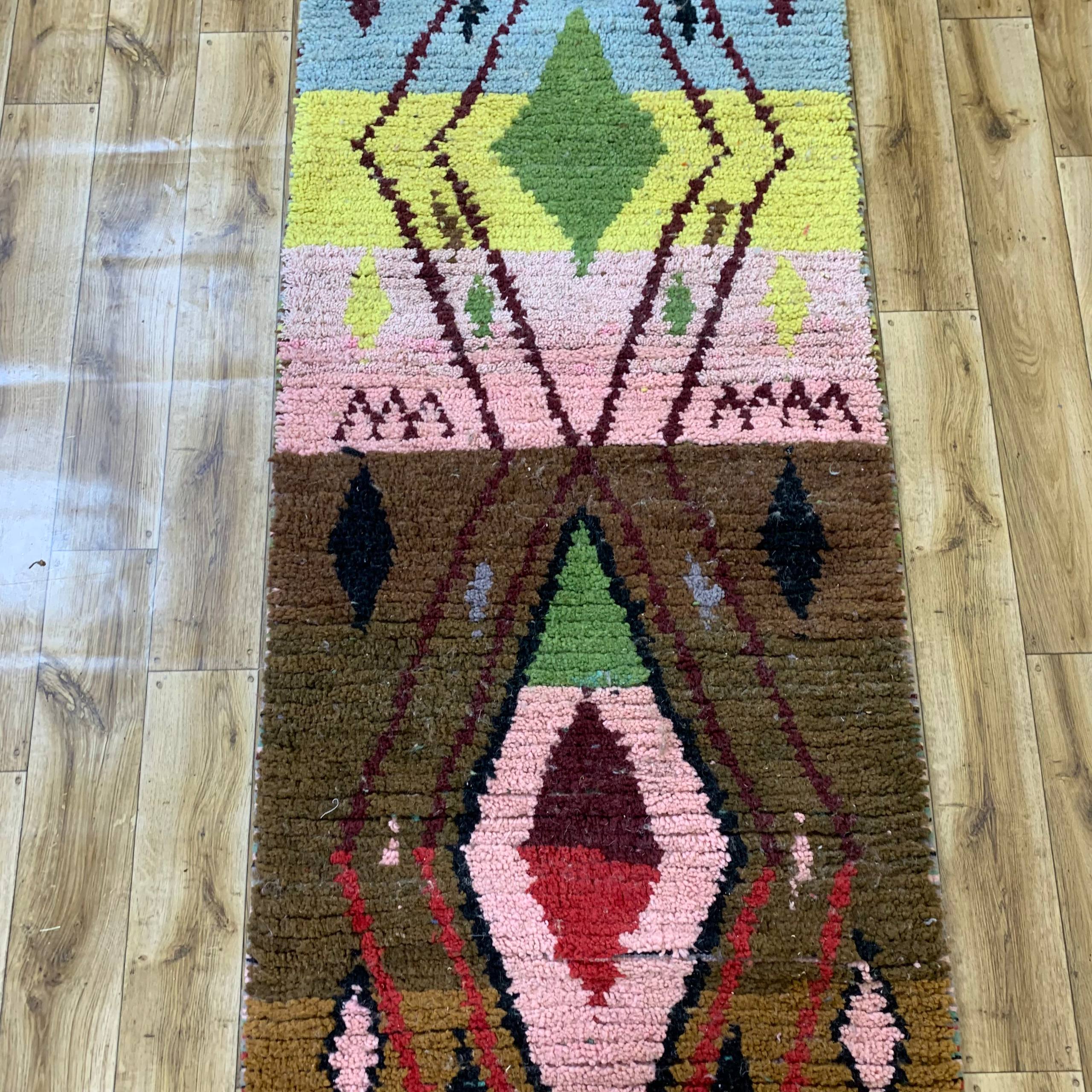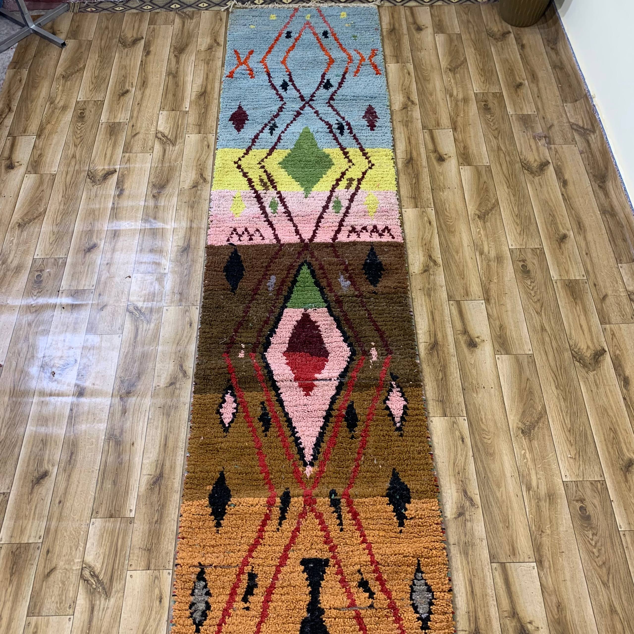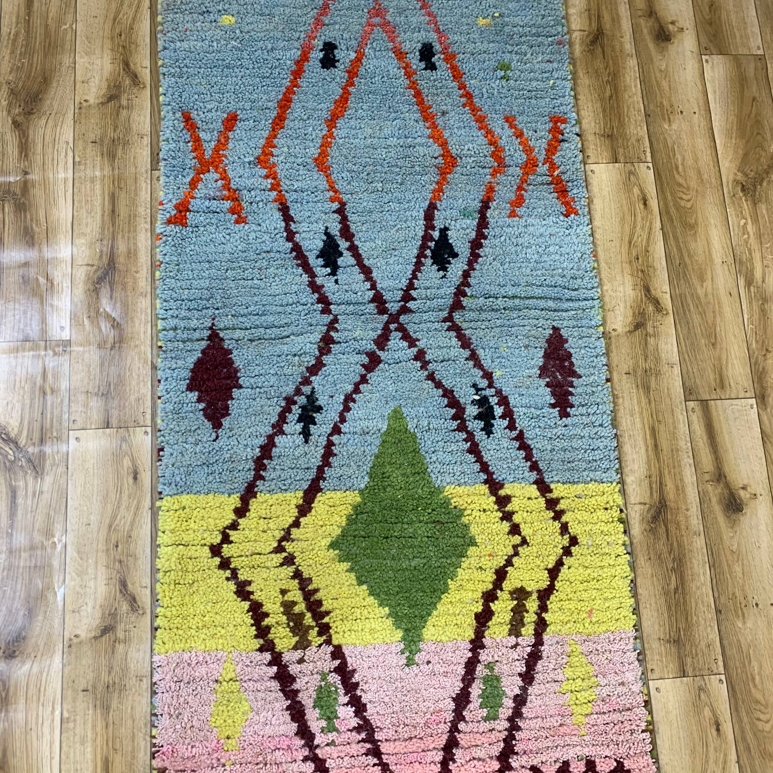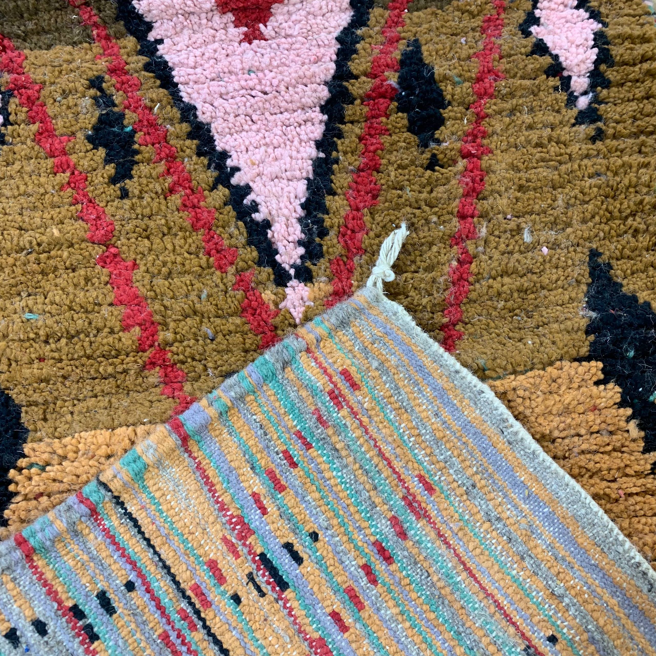 The tightly looped, raised pile gives the rug a tactile, handwoven look, making it both decorative and cozy underfoot. Its balanced color palette and graphic pattern make it suitable for contemporary, bohemian, or eclectic interiors.