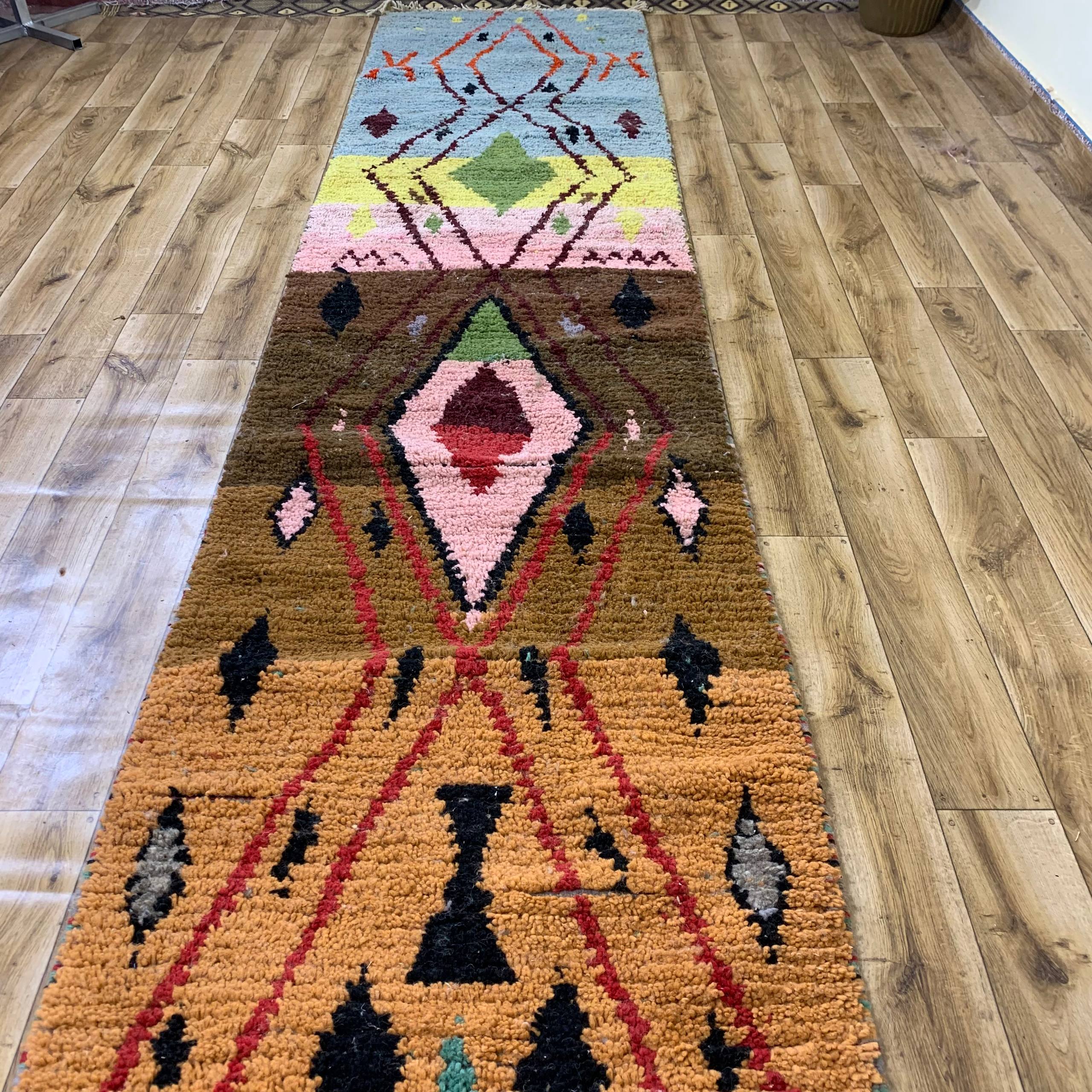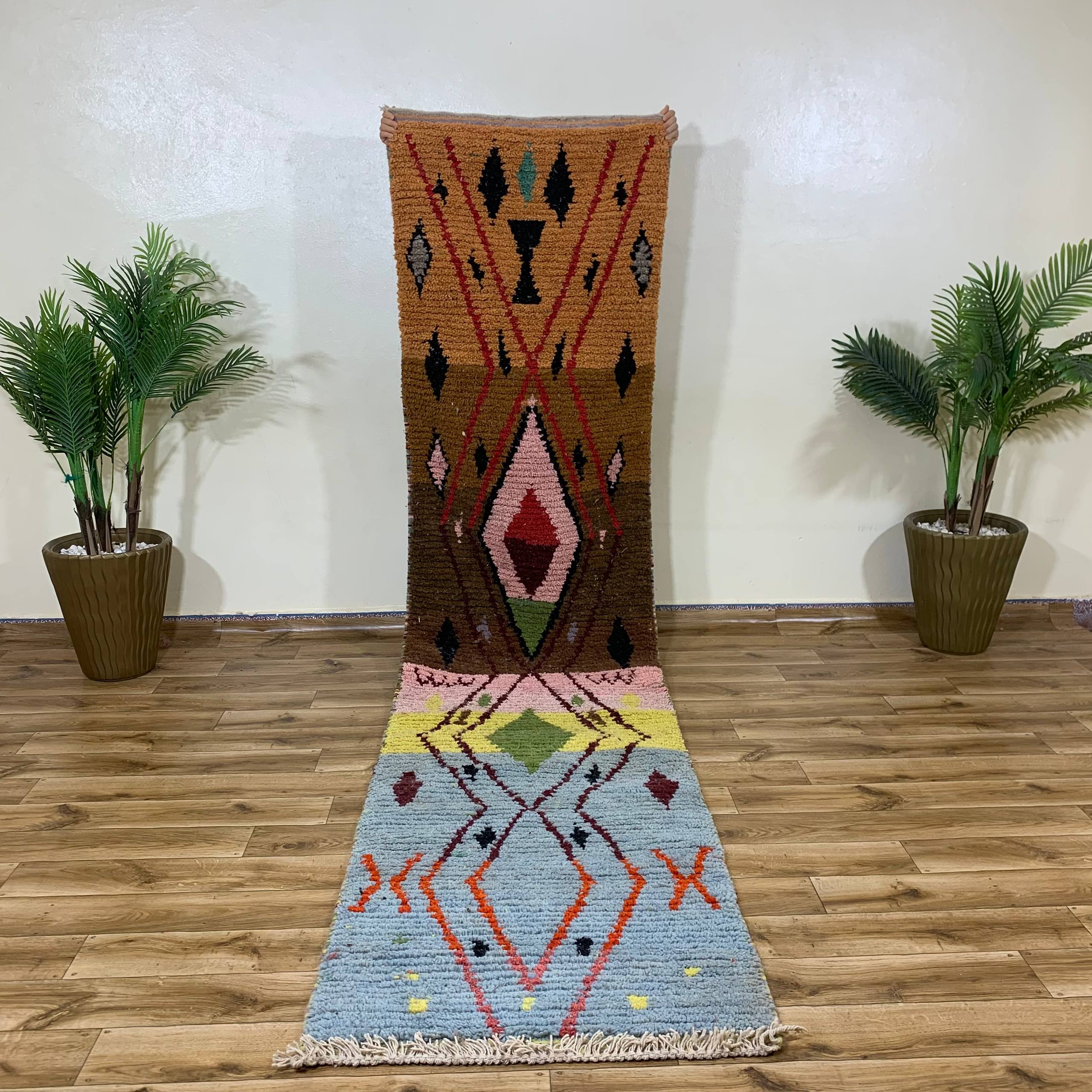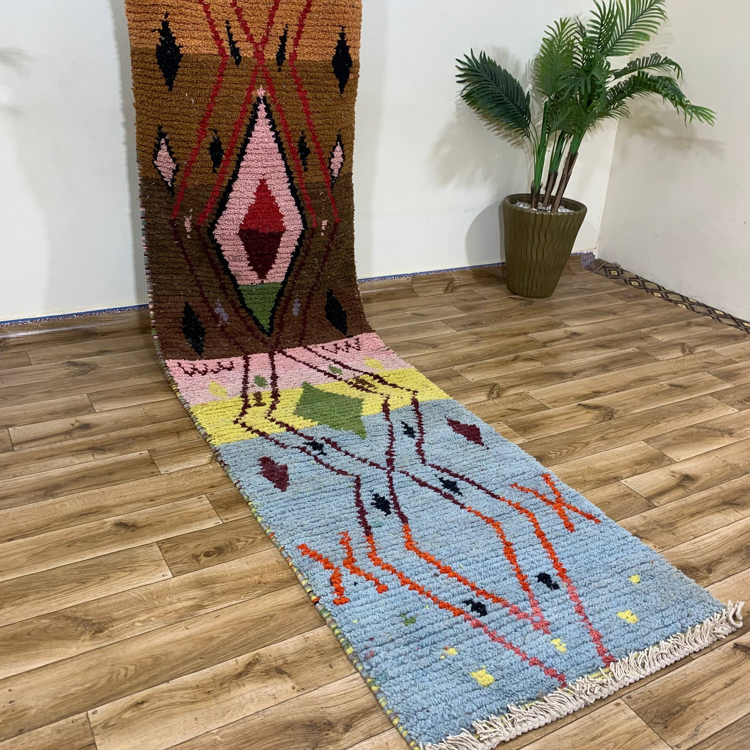 The tightly looped, raised pile gives the rug a tactile, handwoven look, making it both decorative and cozy underfoot. Its balanced color palette and graphic pattern make it suitable for contemporary, bohemian, or eclectic interiors.