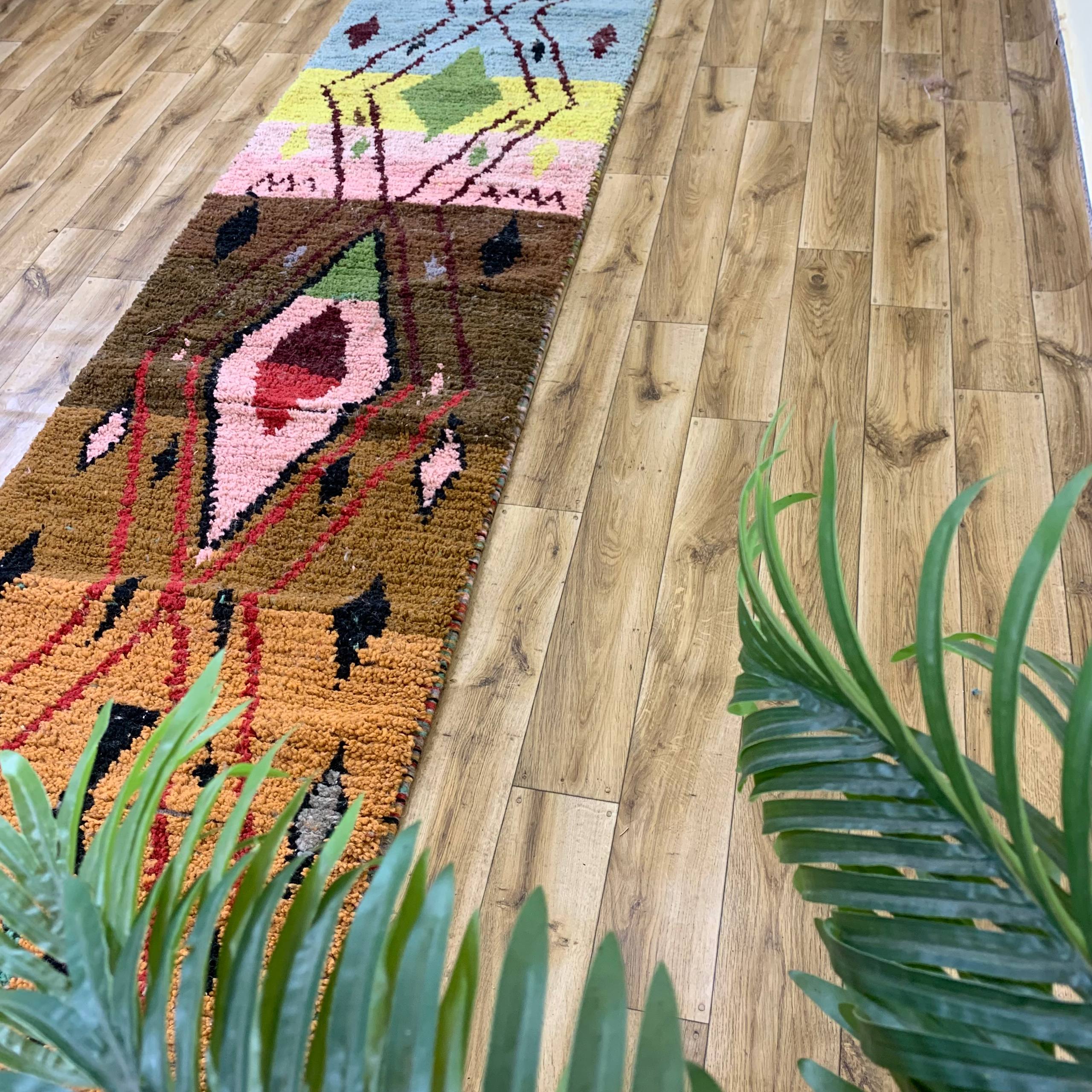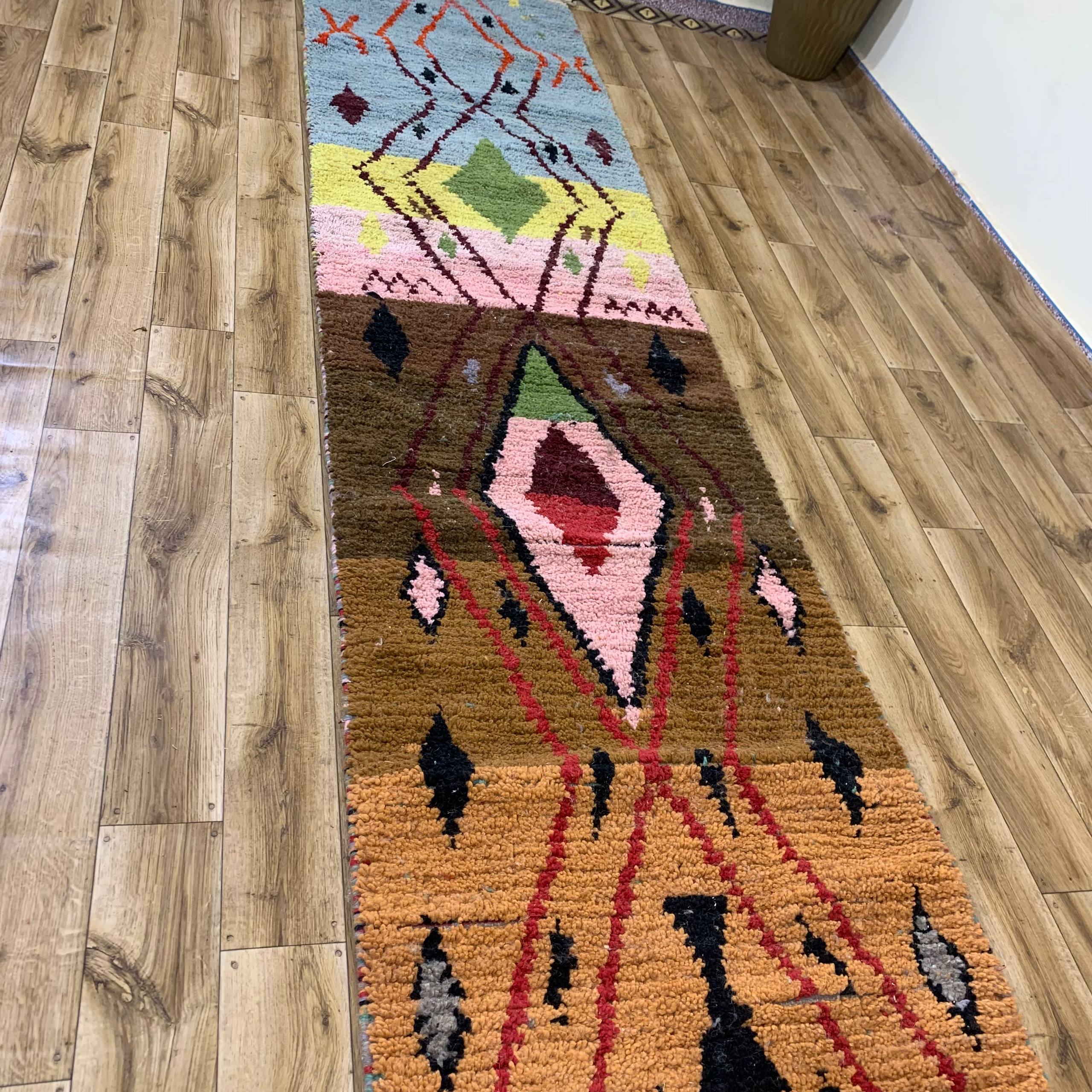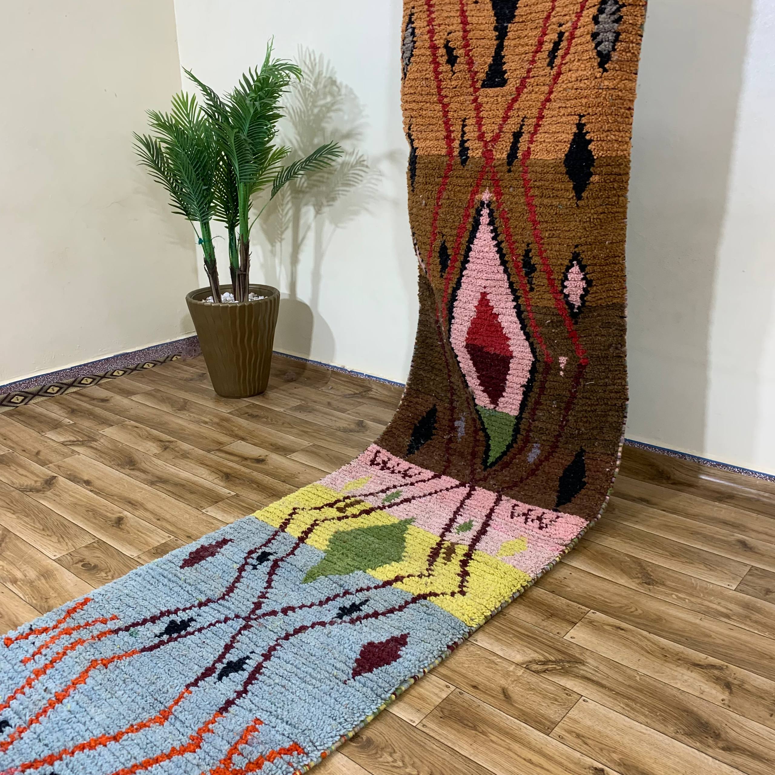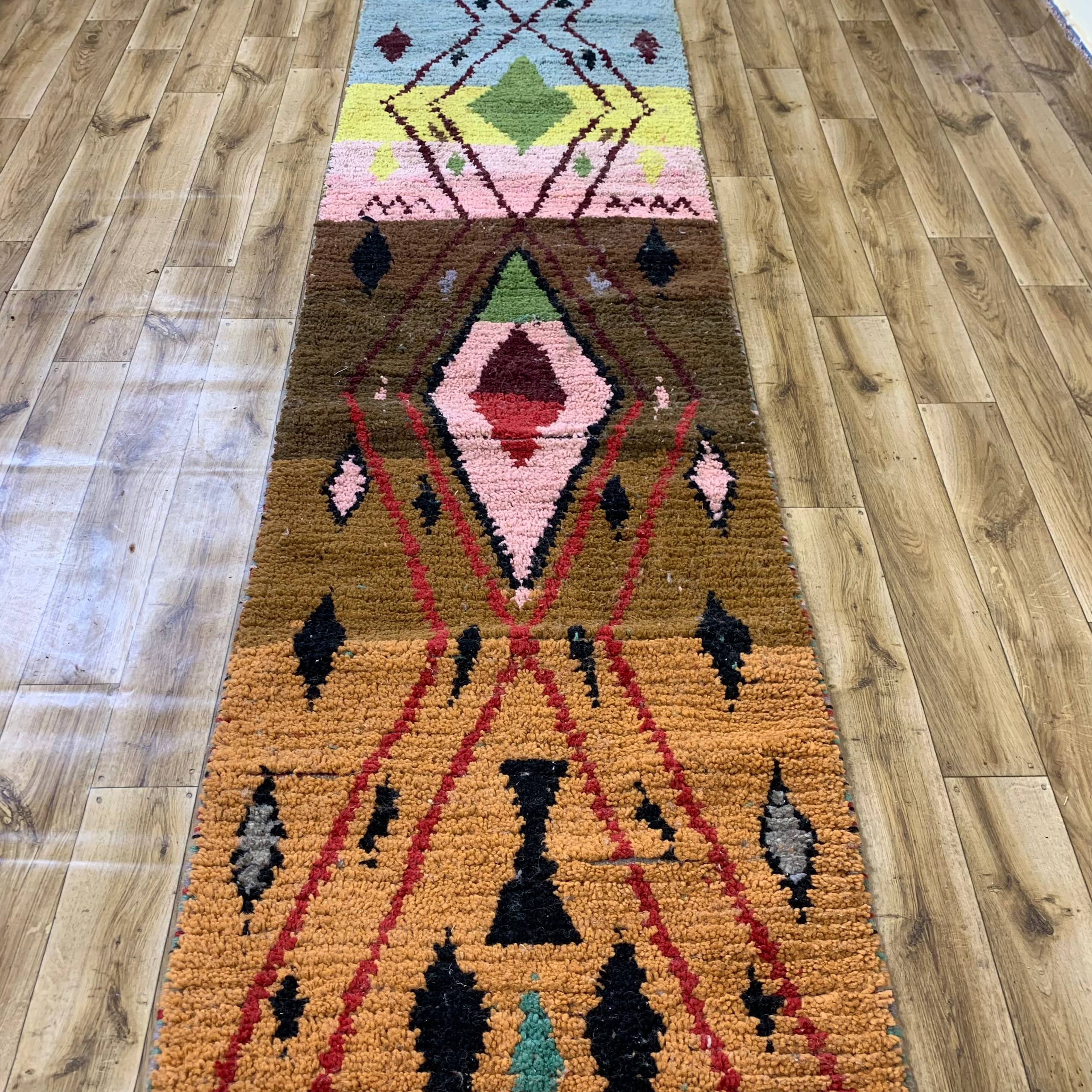 The tightly looped, raised pile gives the rug a tactile, handwoven look, making it both decorative and cozy underfoot. Its balanced color palette and graphic pattern make it suitable for contemporary, bohemian, or eclectic interiors.